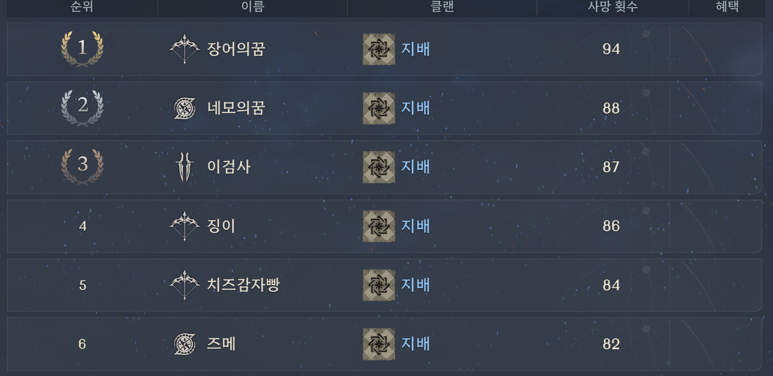 라다서버 PVP 랭킹갱신(최신판)