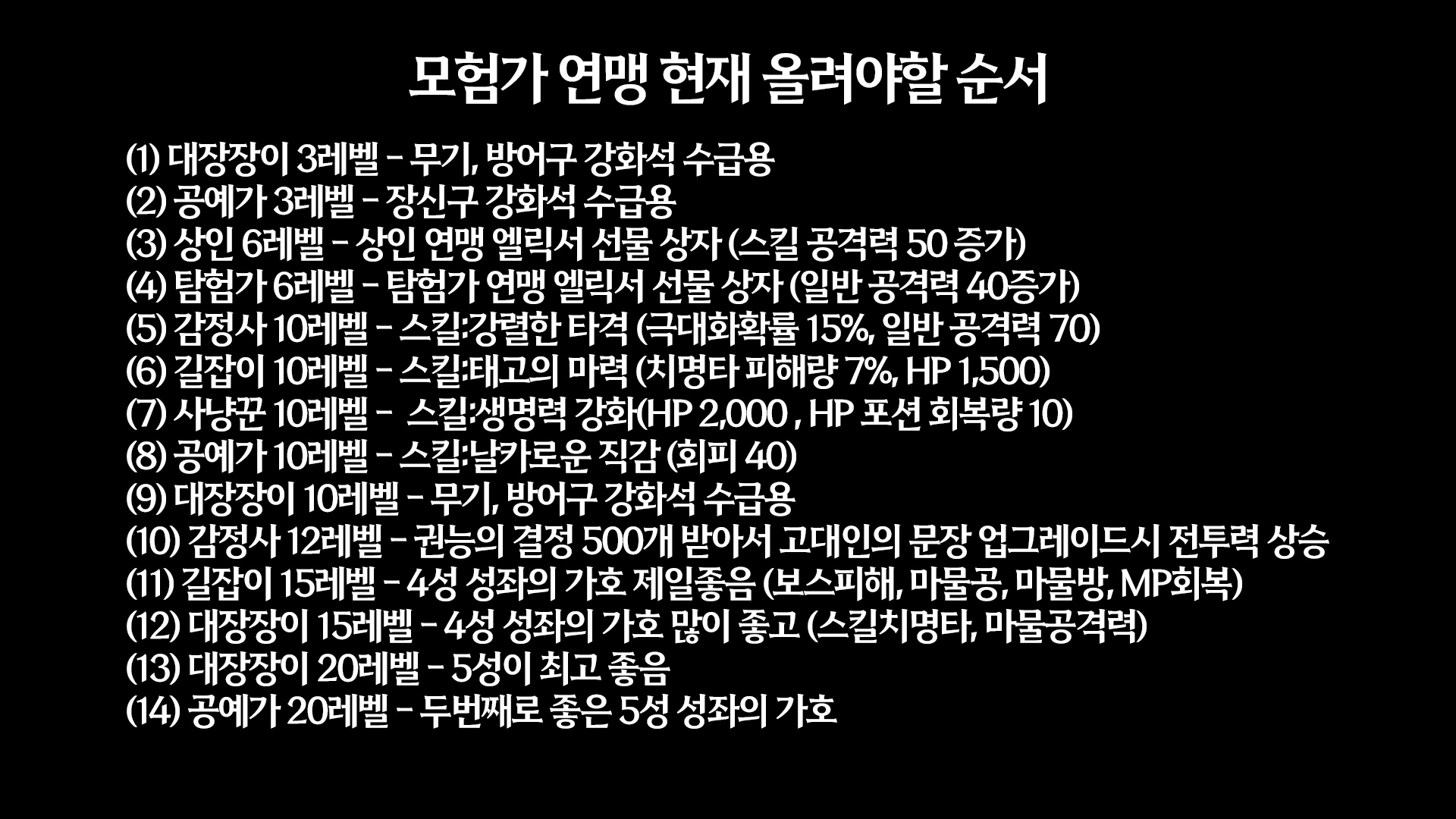 제일효과적인 모험가연맹 렙업순서 추천