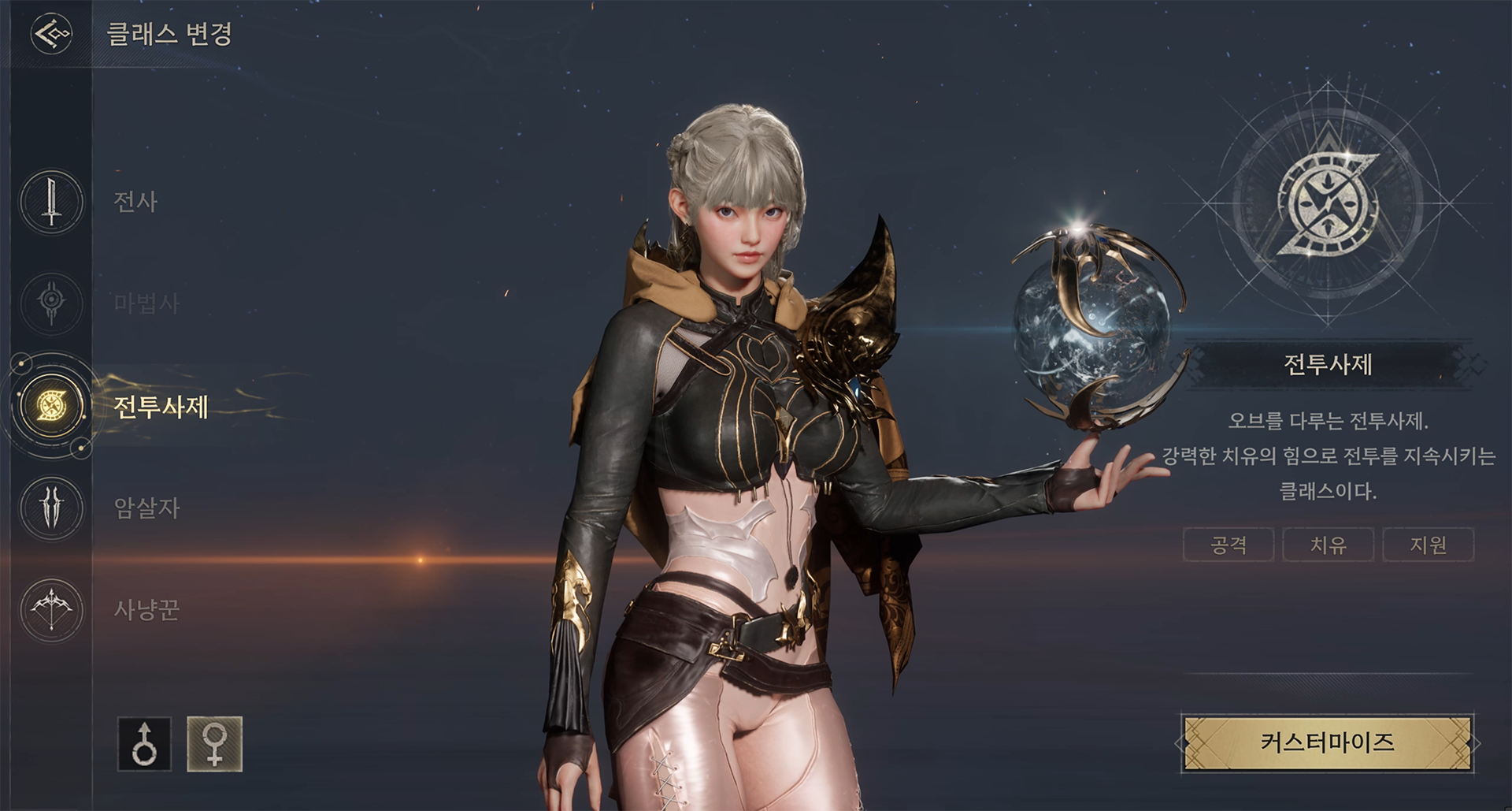 - 변경할 클래스에 맞춰 새로운 커스터마이징을 진행하실 수 있으며, 외형 설정 완료 후 '계속 변경' 버튼 클릭 시 세부 화면으로 이동합니다.